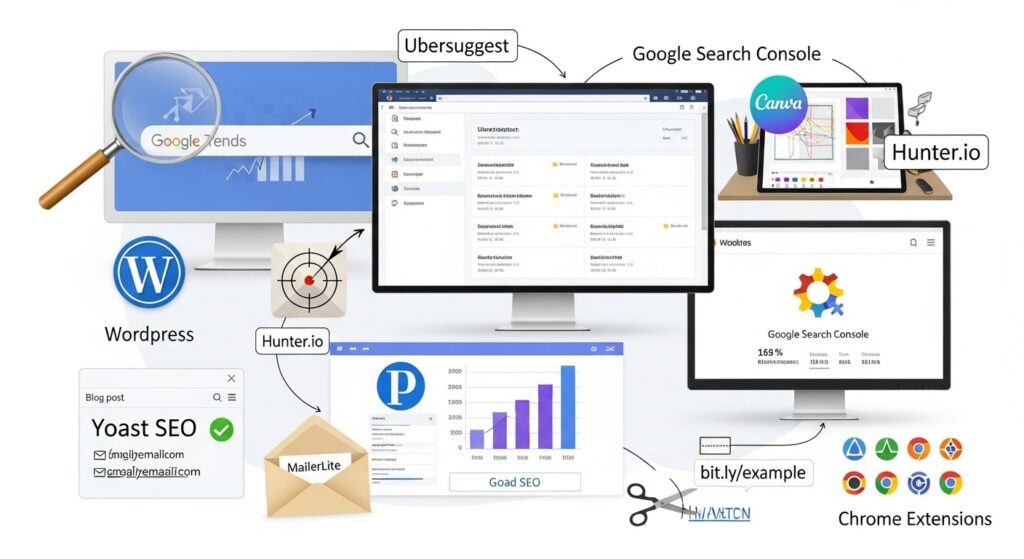 The truth is, you don’t need expensive subscriptions to grow. There are plenty of free affiliate marketing tools that can help you research keywords, design content, build email lists, and track your results effectively.